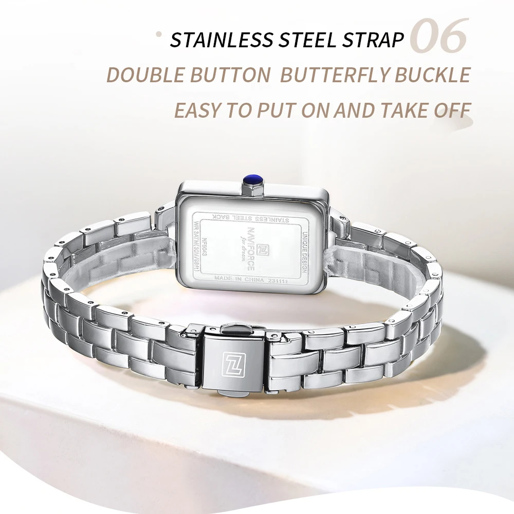 Furthermore, the comfort of the NF5043 watch is a key aspect we emphasize. The choice of a stainless steel strap not only ensures the watch’s durability but also gives it an extra touch of relaxed charm. If you are looking for a watch that combines fashion with high-quality elegance to meet your customers’ needs, the NF5043 is undoubtedly your ideal choice.